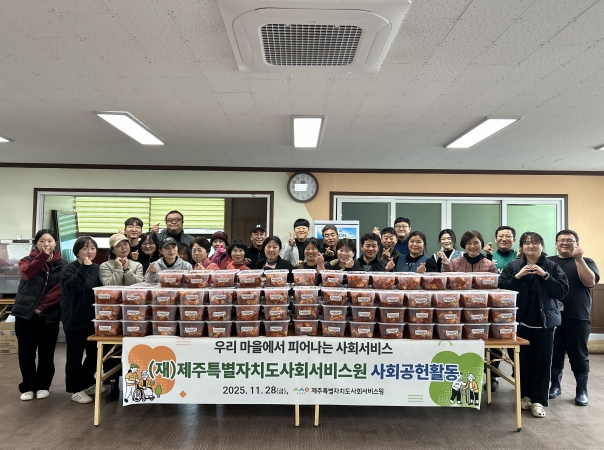 행사사진 갤러리 검색 [검색어 분류] 제목+내용 제목 내용 검색 전체 308건 현재 페이지 1 / 31 제주형 마을중심 돌봄모델 시범사업 성과공유회 작성일 2025-12-04 조회수 36 제주사회서비스원 제주시센터·저지리 청년회·부녀회 겨울나기 김장 나눔 작성일 2025-12-02 조회수 53 강원도립대학교 사회복지과 현장방문 작성일 2025-11-26 조회수 67 대학생홍보단과 함께 원도심 활성화 캠페인 작성일 2025-11-21 조회수 99 2025년 제주가치돌봄 대학생 홍보단 성과공유 및 해단식 작성일 2025-11-21 조회수 95 직원 기부물품 아름다운가게 전달 작성일 2025-11-07 조회수 134 구리시청 및 구리시 사회복지시설장 제주사회서비스원 벤치마킹 작성일 2025-11-04 조회수 158 제주가치돌봄 13차 홍보부스 운영 작성일 2025-11-04 조회수 142 제주가치돌봄 12차 홍보부스 운영 작성일 2025-11-04 조회수 127 신임 임원 임명장 수여 작성일 2025-10-30 조회수 125 1 2 3 4 5 6 7 8 9 10