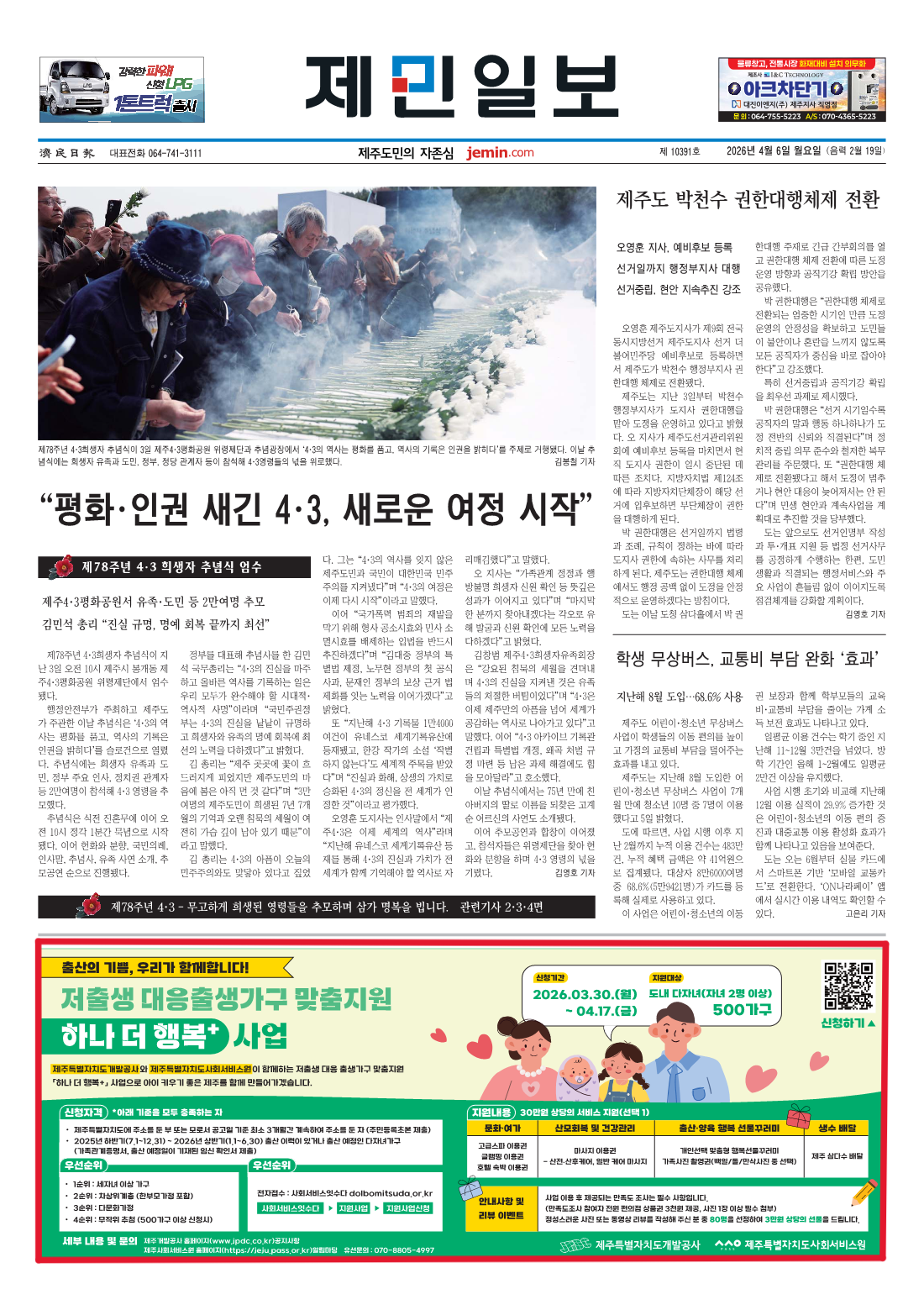 보도자료 보도자료 | [제민일보]저출생 대응 출생가구 맞춤지원 하나 더 행복+ 사업(지면)에 대해 게시글의 제목, 작성자, 작성일, 조회수로 분류하여 정리한 표입니다. [제민일보]저출생 대응 출생가구 맞춤지원 하나 더 행복+ 사업(지면) 작성자 관리자 작성일 26/04/06 (10:26) 조회수 20 제민일보_저출생_대응_출생가구_맞춤지원_하나_더_행복_+_사업.png (936.3 KB) 목록으로