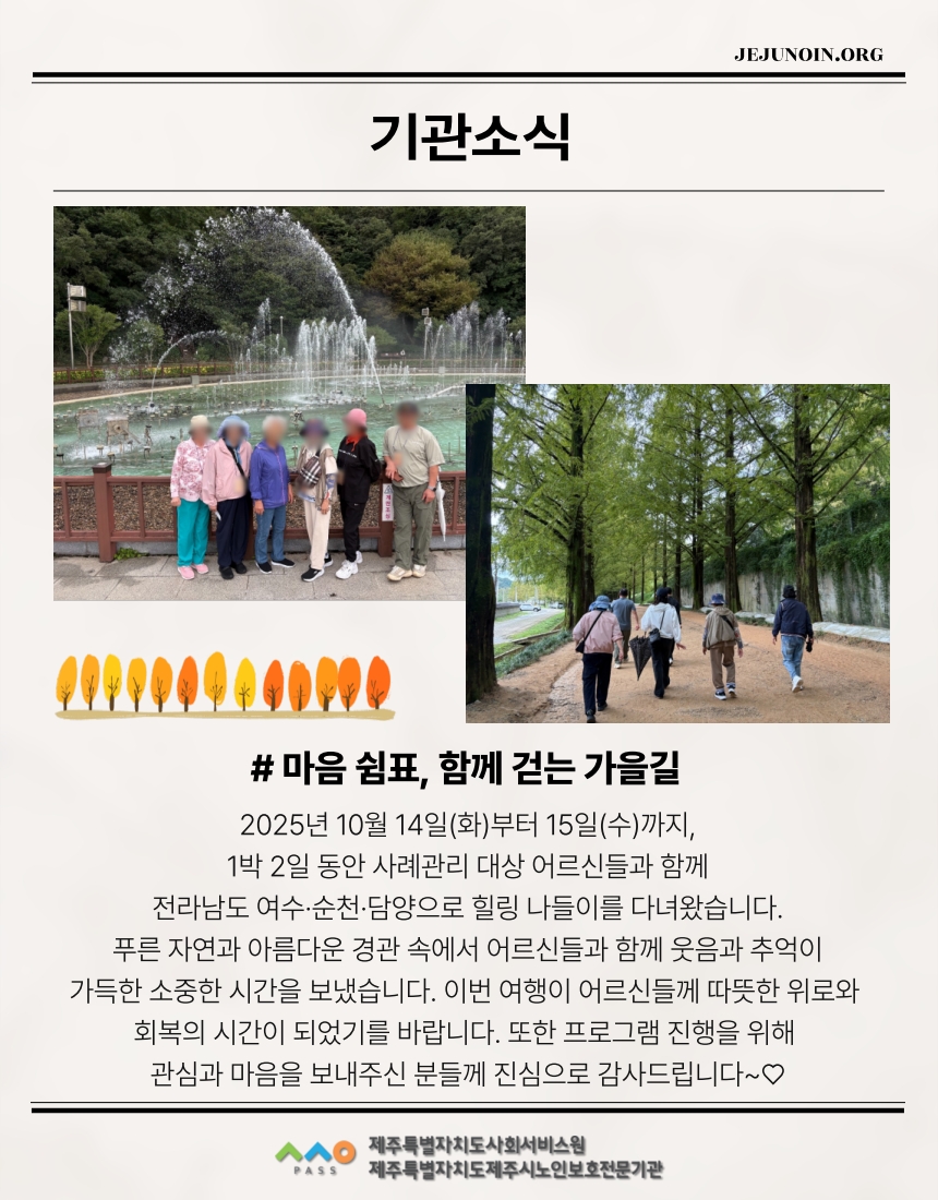 | [제주특별자치도제주시노인보호전문기관] 2025년 10월 뉴스레터 | ||