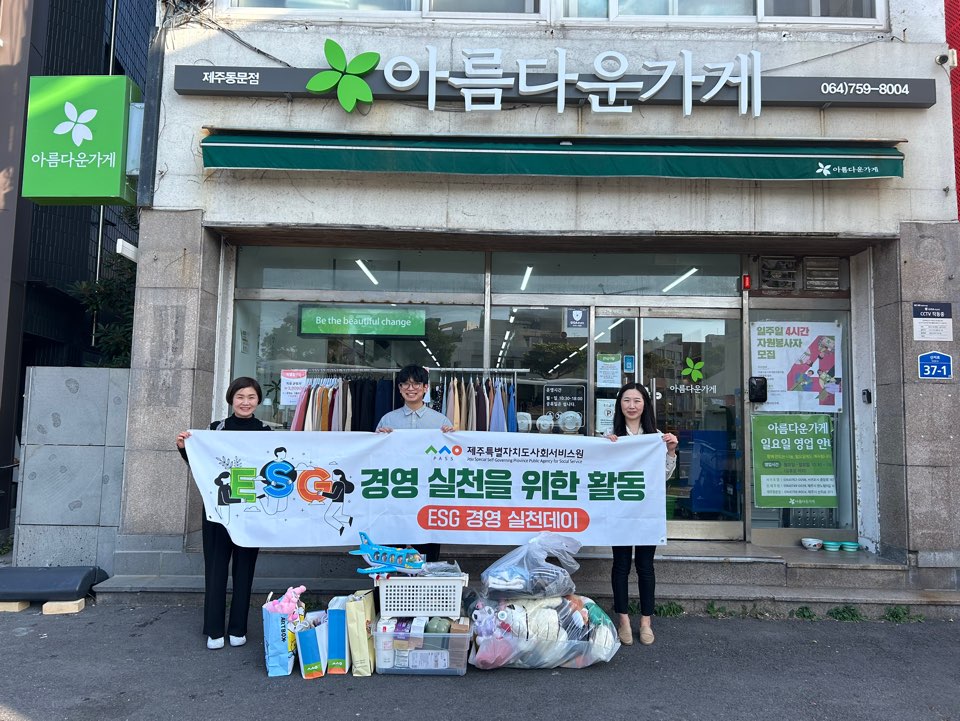 행사사진 행사사진 | 직원 기부물품 아름다운가게 전달에 대해 게시글의 제목, 작성자, 작성일, 조회수로 분류하여 정리한 표입니다. 직원 기부물품 아름다운가게 전달 작성자 관리자 작성일 25/11/07 (10:42) 조회수 14 제주사회서비스원 임직원들의 자발적인 참여를 통해 의류, 생활용품, 아동 장난감 등 물품 150여점을 아름다운가게에 전달하였습니다. 아름다운가게_기부_(2).jpg (186.8 KB) 목록으로
