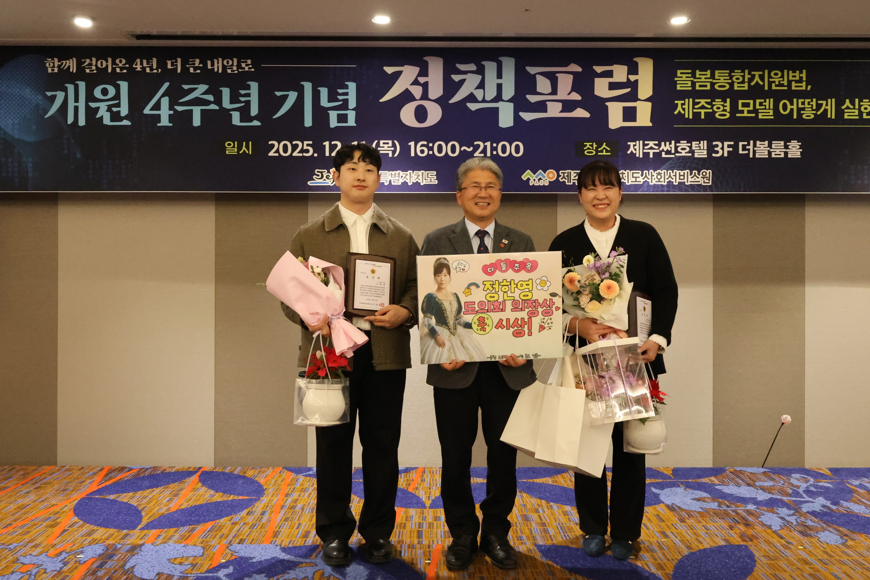 행사사진 행사사진 | 제주사회서비스원 4주년 기념 포럼에 대해 게시글의 제목, 작성자, 작성일, 조회수로 분류하여 정리한 표입니다. 제주사회서비스원 4주년 기념 포럼 작성자 관리자 작성일 25/12/22 (14:19) 조회수 87 2025년 12월 11일 목요일 제주썬호텔에서 제주사회서비스원 4주년 기념 포럼을 개최하였습니다. 다운로드.zip 1.JPG (1.5 MB)2.jpg (4.0 MB)3.jpg (1.7 MB)4.jpg (1.5 MB)5.jpg (1.5 MB)7.jpg (4.2 MB) 목록으로