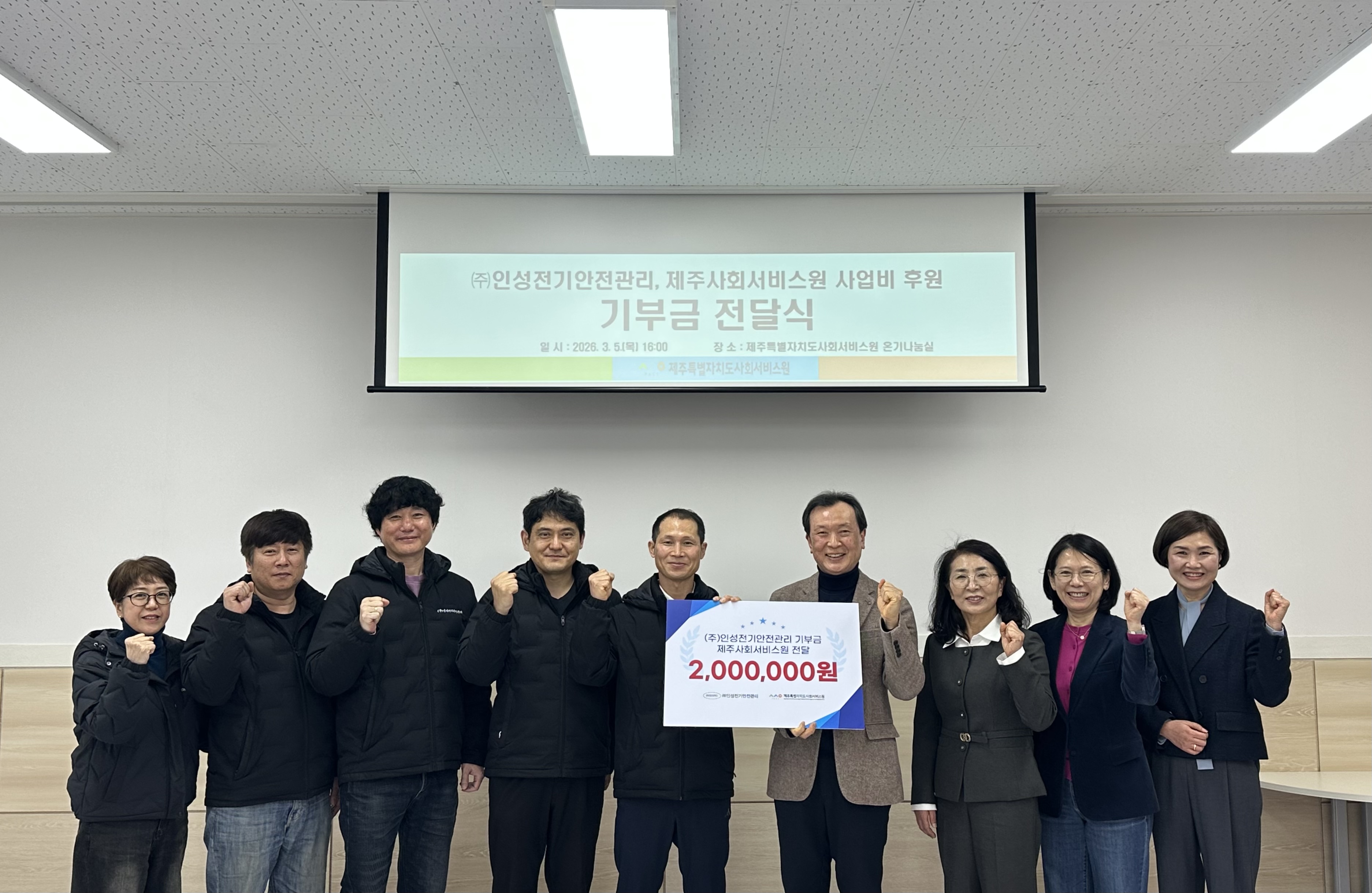행사사진 행사사진 | (주)인성전기안전관리, 제주사회서비스원 사업비 후원에 대해 게시글의 제목, 작성자, 작성일, 조회수로 분류하여 정리한 표입니다. (주)인성전기안전관리, 제주사회서비스원 사업비 후원 작성자 관리자 작성일 26/03/06 (11:46) 조회수 26 다운로드.zip 사진.jpg (1.0 MB)사진1.jpg (1.7 MB)사진2.jpg (1.6 MB) 목록으로